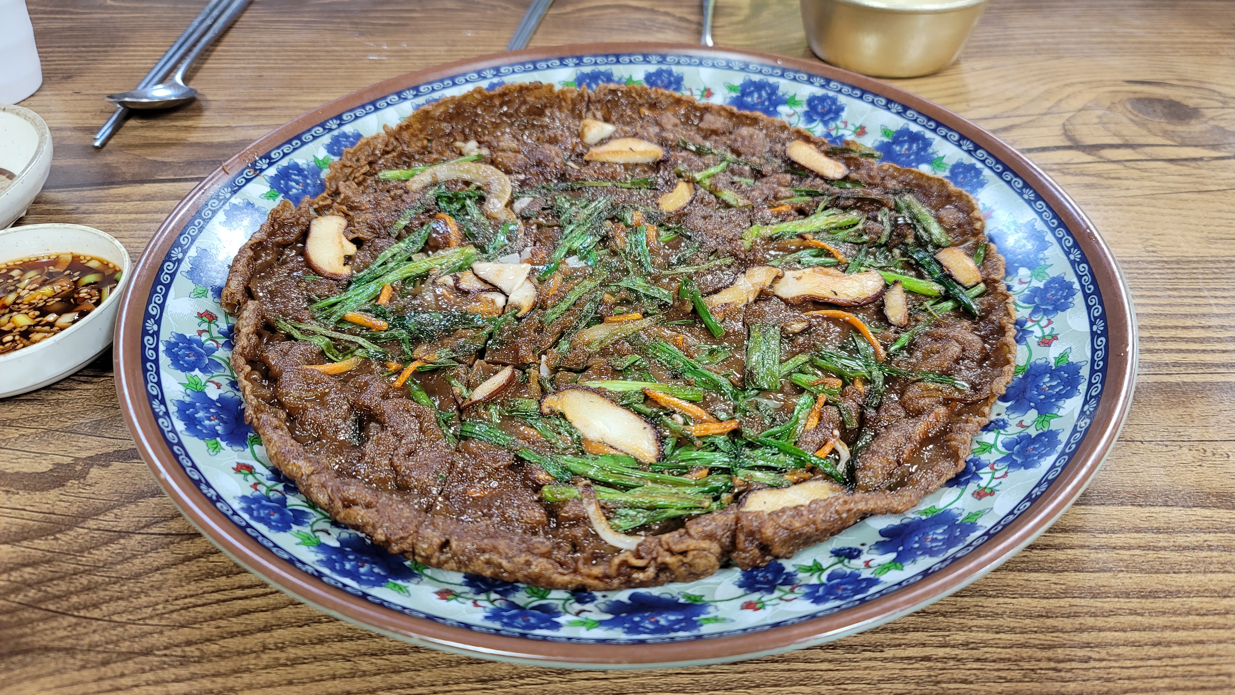 도토리묵전은 고소한 맛이 일품이에요. 바삭한 겉면과 부드러운 속이 조화를 이루며, 함께 제공되는 간장 소스와 함께 먹으면 더욱 맛있답니다.